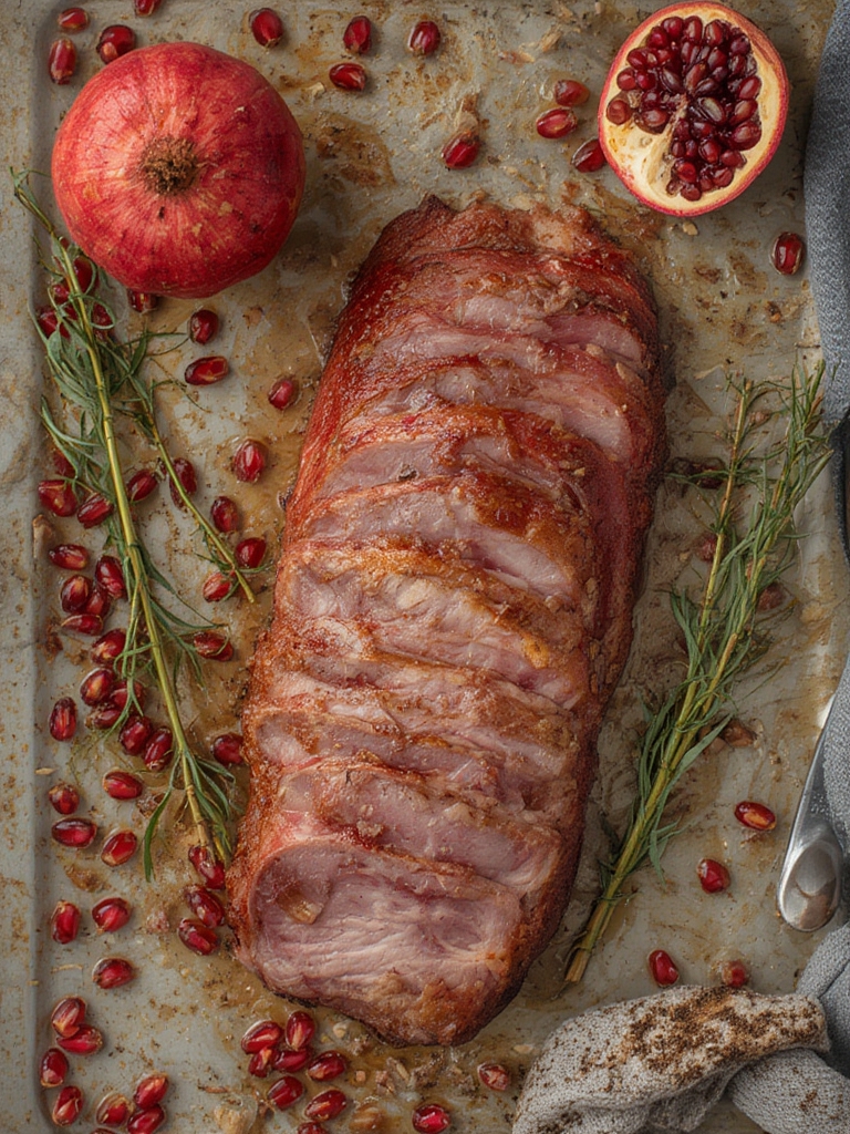 Pomegranate Pork Roast Cider & Rosemary Potatoes – Elegant Holiday Dinner