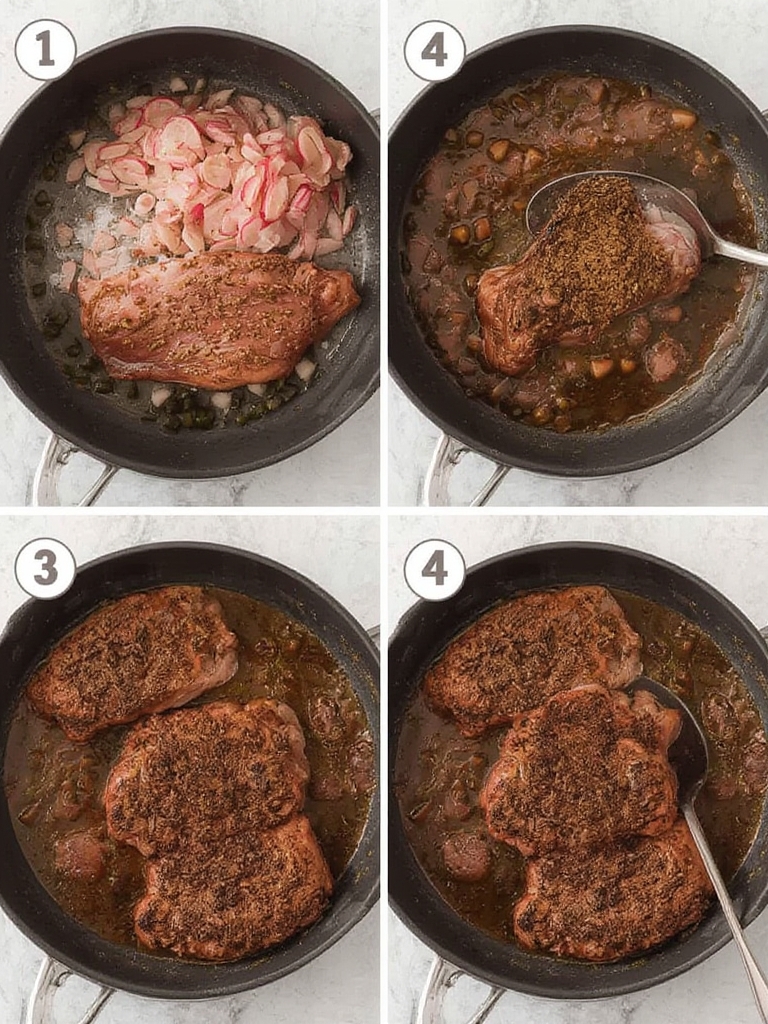 While risotto is in its final stages, heat a cast-iron skillet over high heat until smoking. Sear the filets for 3-4 minutes on each side for medium-rare, or adjust for your preferred doneness. The espresso crust will caramelize beautifully, creating a flavorful exterior.